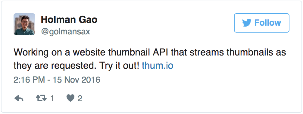 Because this use case is so popular, we made it really easy to do with a Thum.io URL.